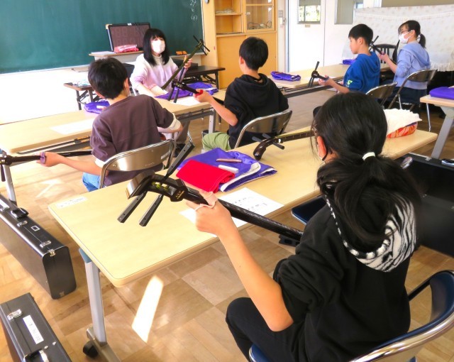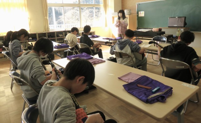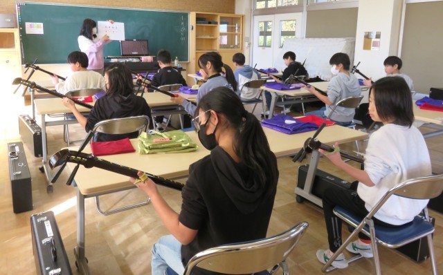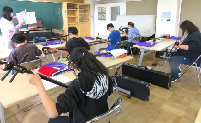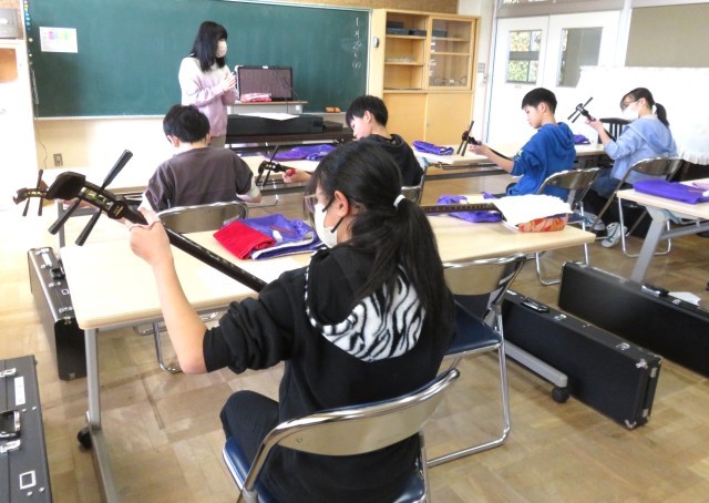 第3回目の三味線体験に5年生も6年生も真剣に取り組み、それぞれ一曲を最後まで通しで演奏することができました。講師の先生に励ましていただきながら、難しい演奏に挑戦することができました。日本の伝統楽器に親しむ貴重な体験になりました。