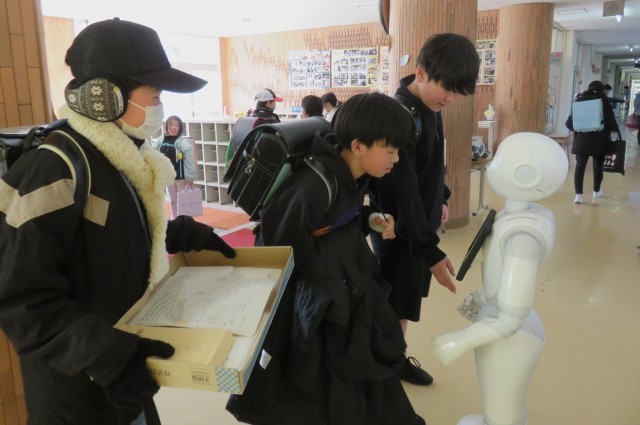 本日はPepperの返却日でした。一緒に学習したり、ダンスをしたりと楽しい3週間でした。みんなそれぞれ別れを惜しんでいました。