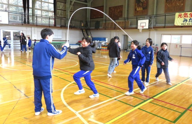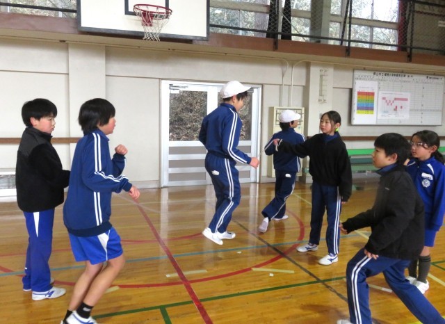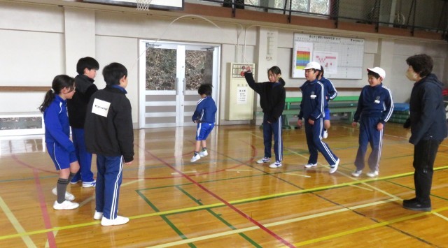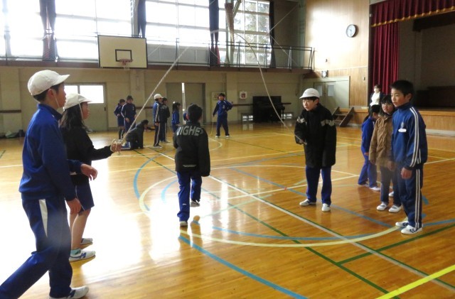 今日の業間は長なわ練習タイムです。全校生でなかよし班ごとに練習に励みました。どの班も励ましあいながら寒い中頑張っていました。