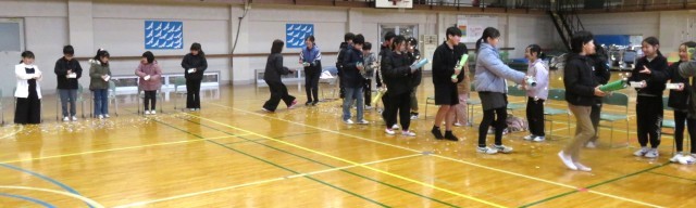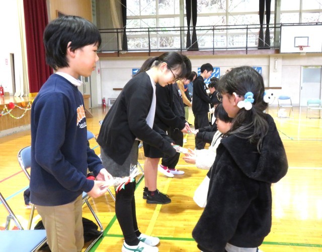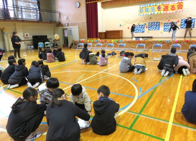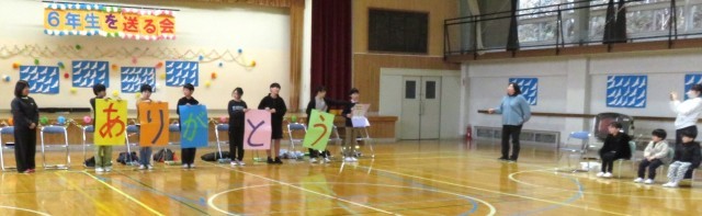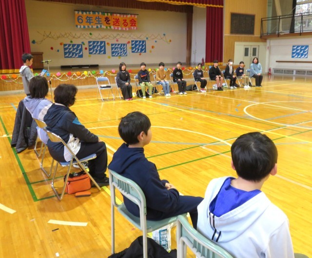 5年生が中心となり、在校生が一丸となって準備を進めてきた6年生を送る会が開催されました。一人一人が会場飾りや招待状、プレゼントを心を込めて作成してきました。楽しいゲームや、委員会活動・特設活動・清掃活動の引き継ぎ、6年生へのエールなど盛りだくさんの会になりとても充実した時間になりました。最後に6年生から各学年にお礼のメッセージが手渡されました。心に残る温かい会になりました。