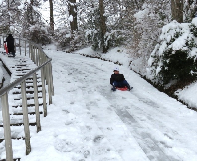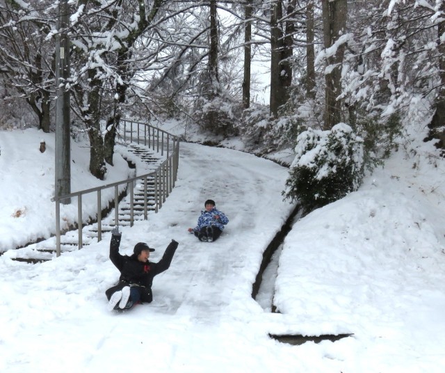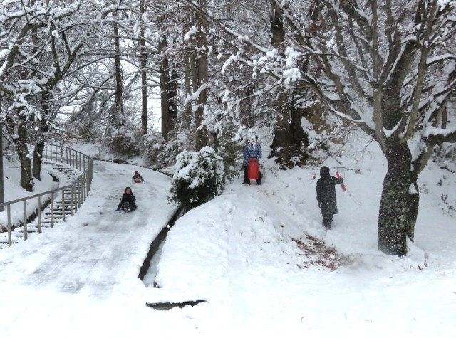 すごい雪になりました。子どもたちは元気いっぱいです。今シーズン初のそり滑り日になりました。みんなルールを守りながら楽しい時間を過ごすことができました。