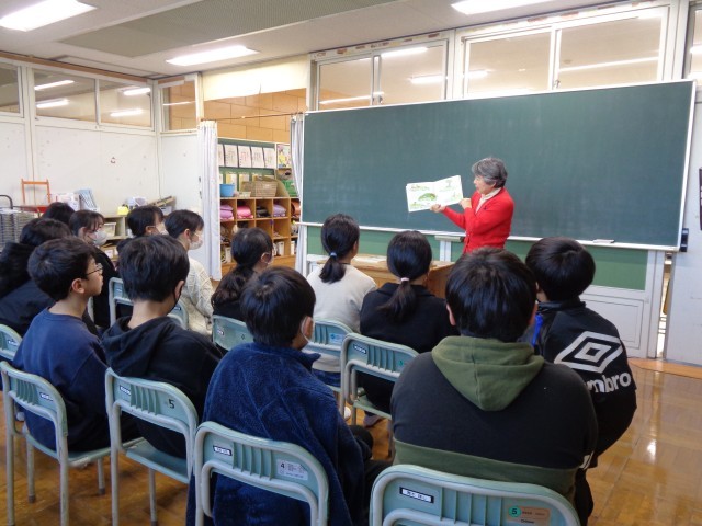 17日に、星先生をお招きし、高学年を対象とした「お話会」を開催しました。6年生にとっては、小学校最後の「お話会」です。1年生の時からお世話になっている星先生は、卒業を迎える子どもたちへ心温まるメッセージが込められた絵本や、6年生が1年生の時に読んだ思い出の絵本などを読み聞かせてくださいました。6年生の子どもたちからは、「懐かしい!」「覚えてる!」など声が上がり、当時を思い出しながら目を細めて聞き入っていました。そして最後は、星先生お決まりの「お話会」を閉じる歌を、みんなで口ずさみました。