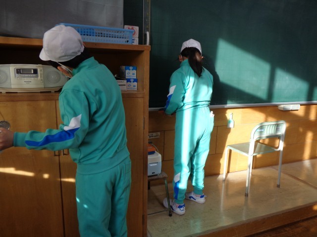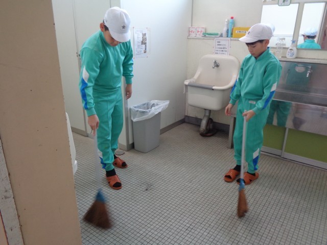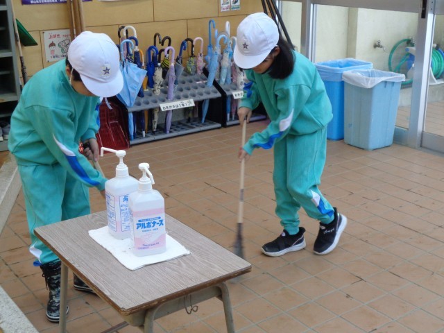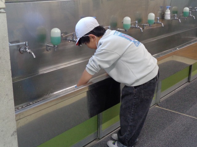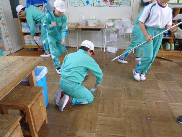 木曜日の朝活動は、学級ごとの清掃時間です。教室内や昇降口、手洗い場など、自分たちの持ち場を朝から熱心に清掃していました。