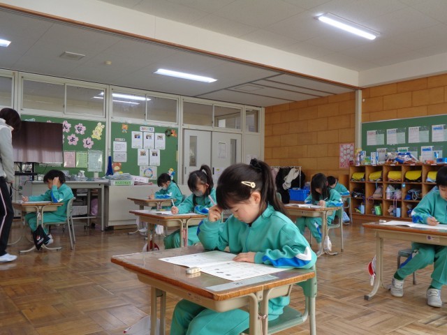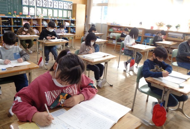 二日間の日程で、国語科と算数科の学力テストを実施します。本日は国語科のテストに挑戦しました。子どもたちは集中して問題文を読み、答えを丁寧に書いていました。初めての学力テストとなった1年生からは、「難しいところもあったけど、最後まで諦めず、答えを全部書きました。」という頼もしい感想が上がっていました。