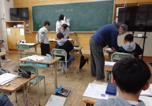 小数の計算プリントの間違い直しに加え、教科書の「学習の仕上げ」の問題にも挑戦しました。既習の九九や足し算・引き算をしっかりと使いこなし、計算力を高めています。