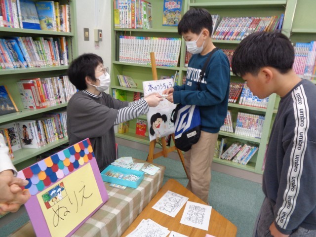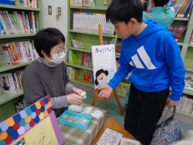 今日から図書室では、「本のつうちょう」の引き換えが始まっています。「本のつうちょう」とは、金曜日に本を借りる際にもらえるスタンプを貯めるためのカードです。スタンプがたまった「本のつうちょう」でチケット10枚を受け取ることができ、そのチケットは本バッグやしおり、折り紙などと交換できます。この一年、子どもたちはたくさん本を読み、世界を広げ、心豊かに成長しました。