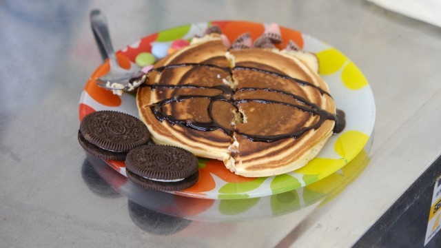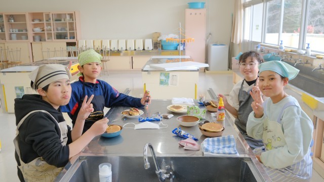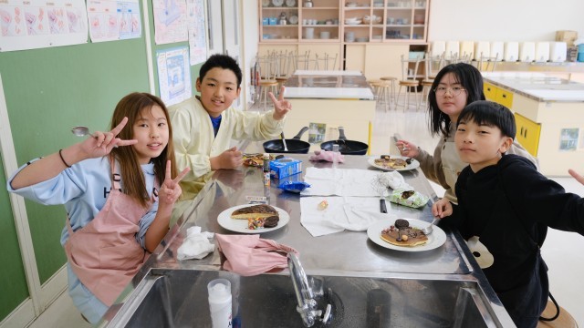 2,3校時目にお楽しみ会をしました。1年間のがんばりをねぎらうとともに,6年生に向けて,みんなで協力してがんばっていこうと企画して行いました。前半はドッジボールや鬼ごっこで体を動かし,後半はパンケーキを作って食べました。それぞれ好きなトッピングを持ってきて,思い思いのパンケーキを作っていました。