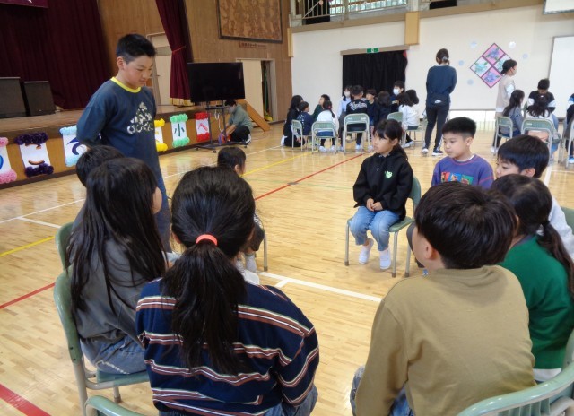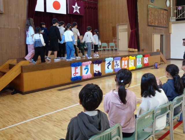 6年生が中心となって準備を進めてきた「1年生を迎える会」が行われました。「みよた家族」ごとに自己紹介やゲームを楽しみ、1年生を温かく迎えました。5年生からは素敵なメダルのプレゼントが贈られ、1年生も元気にお礼の言葉を伝えてくれました。
