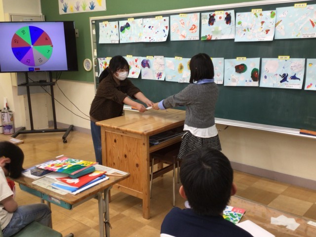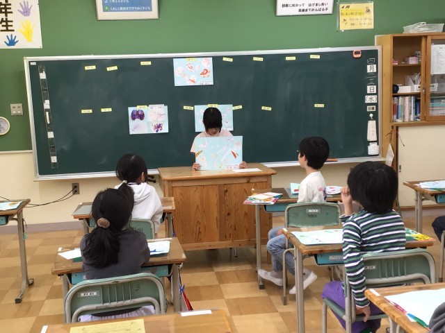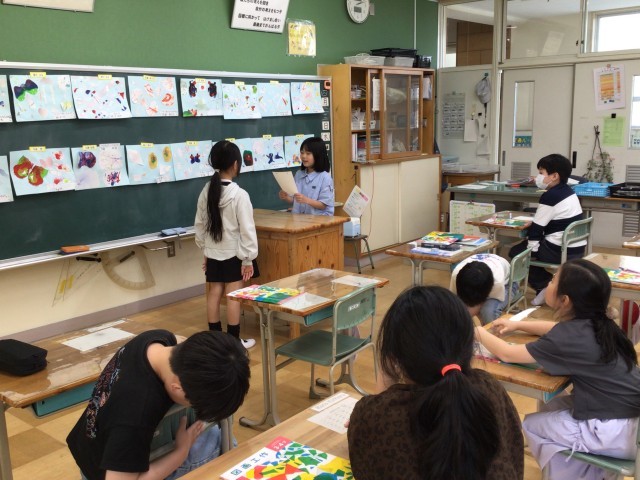 4年生では、前回完成させた作品の発表会を行いました。