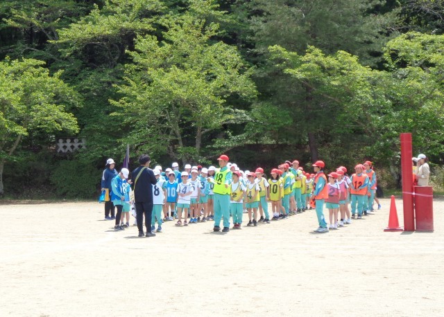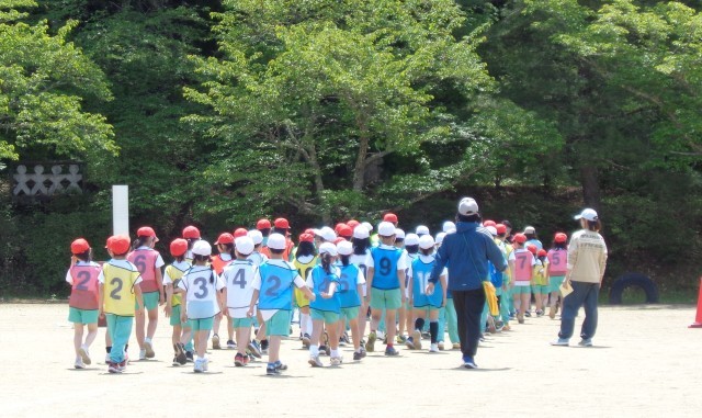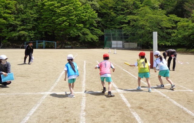 運動会の最後を飾るのは、全校生リレーです。全体練習の2回目となる今回は、その練習を行いました。整列の仕方やスタート位置などを確認した後、実際にバトンをつなぎました。練習では紅組が勝利しましたが、さて、本番はどのような結果になるでしょうか。