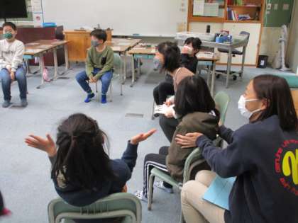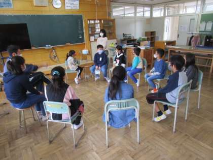 3校時目は、1年生を迎える会が行われました。6年生の実行委員長あいさつなど、Zoomを使った全体会の後、みよた家族の班に分かれて自己紹介や楽しいゲームをしました。じゃんけんゲームやジェスチャーゲーム、しりとりなどをやったら、みんなが笑顔になりました。最後に、5年生からプレゼントをもらいました。