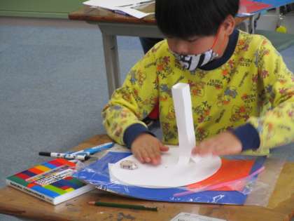 3年生は、図工で「くるくるランド」作りを始めました。工程がわからないときは先生に聞いたり教え合ったりします。「どうなって回るんだろう?」これからが楽しみです。