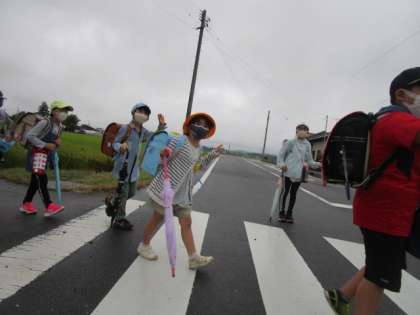 9月2日(木)、朝の気温は16度です。ずいぶん涼しくなりました。時折小雨が降る曇り空です。早めに減速して子ども達の道路横断を温かく見守ってくださる運転手の方々、ありがとうございます。