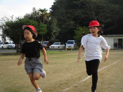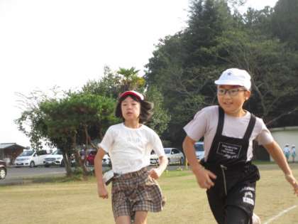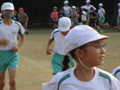 10月8日(金)朝の気温は18.5度です。今日も暖かい日です。トラックを何周か走った後の50m走。毎日の繰り返しが走力・体力を高めます。