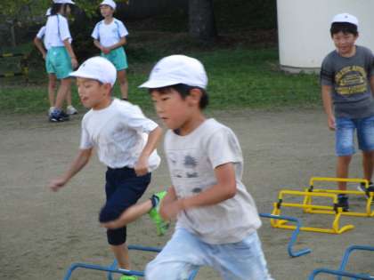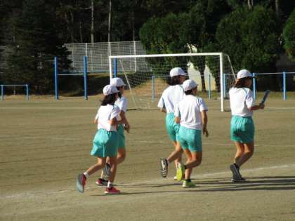 今日は6年生がバトンを持って一番早く校庭に出てきました。陸上交歓会に向けた意気込みを感じます。下級生も次々に校庭に出てきて走りました。