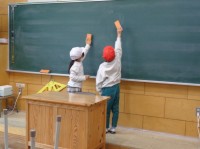 昼休みの後、午後1時20分からは清掃の時間です。班長さんの指示のもと、みんなで力を合わせます。少ない人数で御代田小をきれいにします。