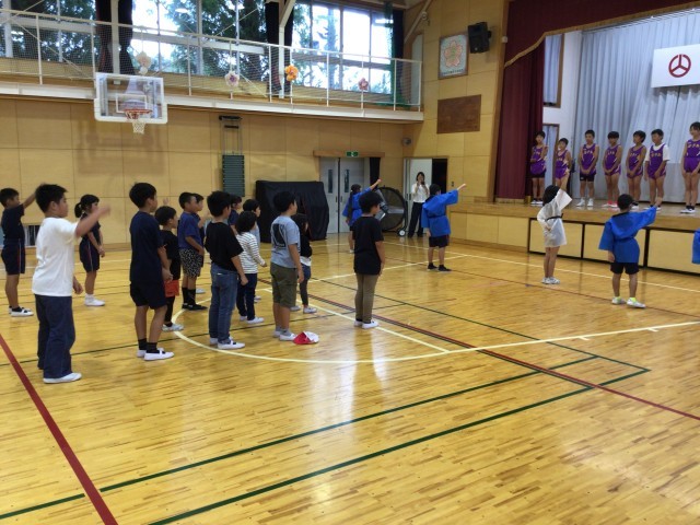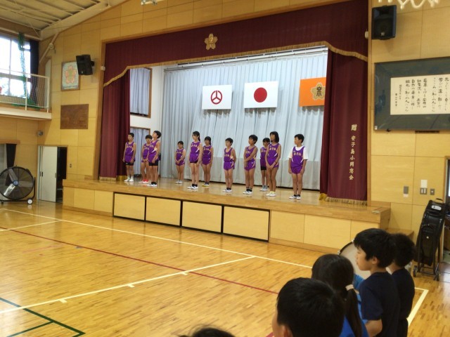 あこっぴータイムの時間に陸上交歓会選手を励ます会を行いました。本校からは13名がエントリーしています。人数の関係で5年生、4年生の一部が参加します。今日は4年生が応援リーダーとなり全校生で選手の応援をしました。「自己ベストを目指して頑張ります」と選手の皆さんから力強い決意表明がありました。4年生の応援も堂々としていて立派でした。