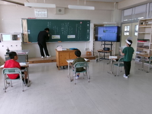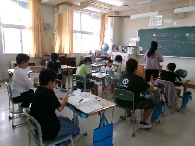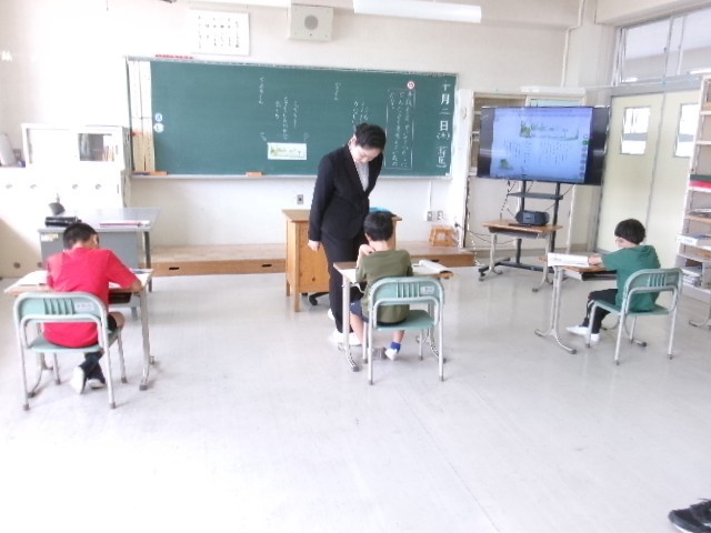 実習生の研究上の様子です。2年生の国語の授業でした。子供たちの意見をうまく引き出して落ち着いて進めていました。5年生の算数は約分の学習でした。約分しないとテストでは間違いとなってしまいます。素早く正確にできるように練習を積み重ねることが大事ですね。