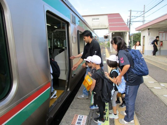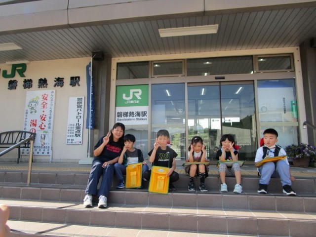 10月3日の熱海町探検の様子です。安子ヶ島駅から磐越西線で磐梯熱海へ。「電車に乗るのは初めてです」という子もいて、朝から探検を楽しみにしていました。駅前の足湯につかったり、ほっとあたみ内の図書室や物産館などを見学したりしてきました。身近な施設を見学でき電車にも乗れて、貴重な体験となりました。