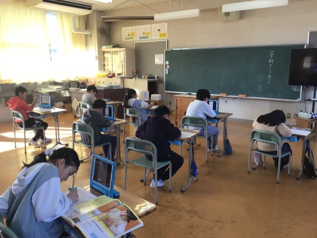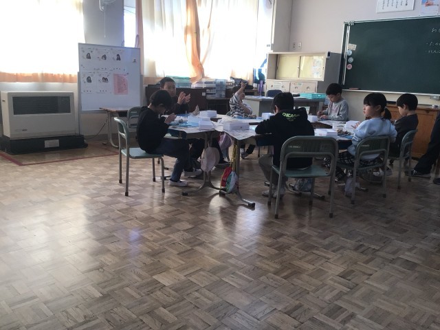 冬休みまで登校する日はあと六日となりました。1、2年生は二学期にがんばったことを振り返り、思い出の場面を粘土で表していました。「算数をがんばったんです。これは机です」と教えてくれました。4年生は二学期を振り返って作文を書いていました。全校遠足が楽しかったです、持久走記録会をがんばりました、理科の実験をがんばりましたなど、黙々と書いていました。人と比べるのではなく、自分の努力や成長に気づき自信をもってほしいです。