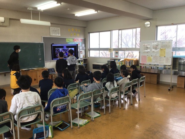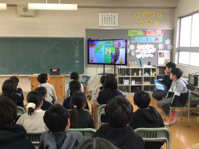 那覇市の天妃小学校4年生との交流学習の様子です。最初に天妃小学校から、学校紹介や沖縄の自然(きれいな海など)、食べ物(沖縄そば、シークワーサーなど)、観光(国際通りなど)の発表がありました。「行ってみたいな」など子供たちは興味津々に聞いていました。後半は本校の3年生と4年生が社会科や総合学習で学んだこと(梨栽培、郡山市の位置や気候、交通の様子、学校紹介など)を発表しました。天妃小学校のみなさんにわかってもらえるように、資料の作り方、話す順番などをグループで考えました。発表する相手がいることで、子供たちのやる気がアップしたようです。緊張しながらも頑張った3、4年生。この交流学習を提案してくださった天妃小学校の先生方に感謝申し上げます。