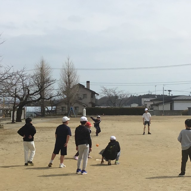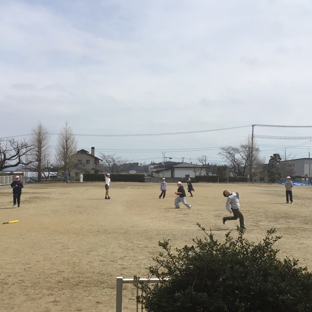 5、6年生がTボールをしていました。ゲームをして盛り上がっていました。学年を超えて仲良く、協力し合えるところが安子島小学校のよいところです。穏やかな天気でとても楽しそうでした。5年生にとっては6年生と一緒にやる体育は今日が最後となります。よい思い出となったことでしょう。