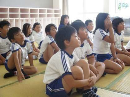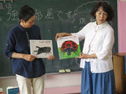 2・3年生は「手遊び歌」が上手にできて、お話にすぐ集中することができました。今回のお話は、「けんかのきもち」。「こうたくん」の気持ちによりそって真剣にきいていました。「だんまりこおろぎ」のお話にも、目や耳を集中させてよ〜く聞いていました。エリック・カールさんの絵本「はらぺこあおむし」を読んでいる2・3年生は、「ごきげんななめのてんとうむし」「ちいさいタネ」なども読んでみるといいですよと紹介していただきました。