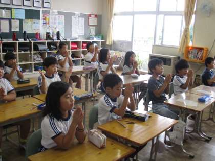 各学年から聞こえる歌声がさわやかな一日のスタートになっています。今日は、4・5年生の女子チームが1年生と一緒に今月の歌をうたっていました。6年生は自然と歌にあわせて体を動かせて、3年生は手話をしっかりとつけながらうたっていました。明日のミニ集会での披露をお楽しみに。