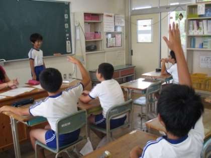 4月から行っている4・5年生の朝のショートスピーチ。ユニークなスピーチに質問攻撃。質問に答える発表者も鍛えられています。
