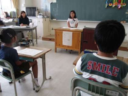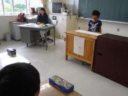 2年生は、夏休み体験したことをスピーチします。今回は、祖父母の皆さんを対象にスピーチします。おじいちゃん、おばあちゃんの表情を見ながら伝わるように話すことが目標なので、原稿をばかり見ず顔を上げて発表する練習をしました。