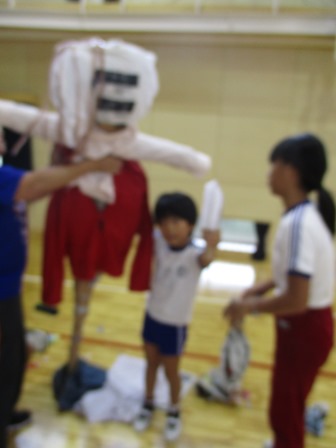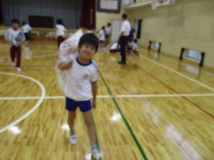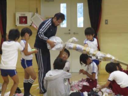 頭と胴体、手足とだんだん人間らしくなって・・・。やせた人も、ふくよかな人もそれぞれ各班のオリジナル作品が見えてきました。途中、1年生がいらなくなった物やゴミを片付けていました。