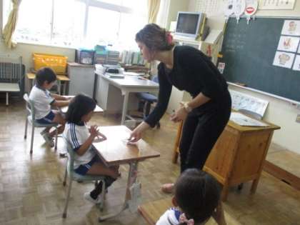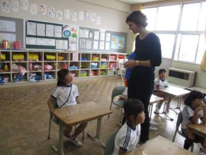 セレステ先生と英語での会話の勉強をしました。動物を英語で覚え、自分の好きな動物を英語で答えました。その答えを質問できるように、体を使って覚えました。大きな動作を入れて表現すると覚えやすいです。