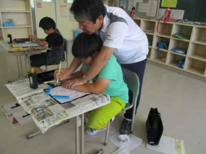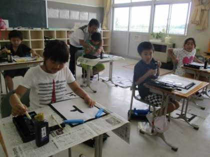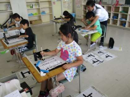 3年生は、筆をもって書写の練習です。筆の持ち方、墨のつけ具合などもすっかり慣れてきました。心を落ち着かせ、姿勢を正して、よい字を書くことは気持ちのいいことです。