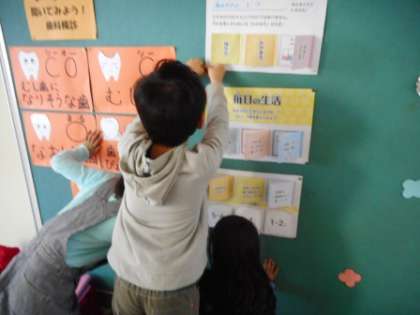「毎日の生活をチェックし、むし歯をなくそう」と保健委員会が掲示物を作成しました。質問形式のチェックとアドバイスは、とてもためになります。保護者のみなさんも、ぜひやってみてください。