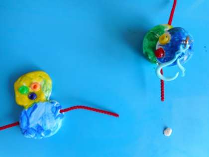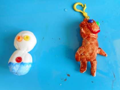 2年生が紙粘土でつくったオリジナルマスコットが完成しました。ユニークなアイディアがひかる作品です。