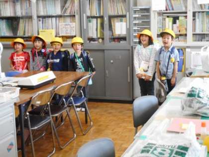 朝から上級生を模範に一生懸命な1年生。全力投球した1日が終わり、職員室で帰りのあいさつです。「今日も一日ありがとうございました。さようなら。」明日も元気に会いましょう。