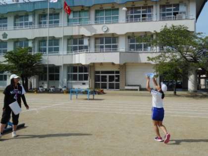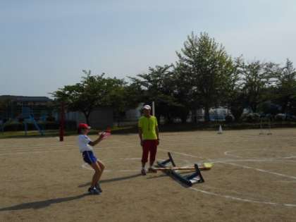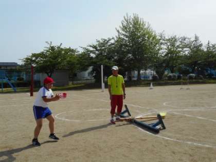 運動会親子種目の「親子でナイスキャッチ」の練習をしました。今回は「師弟でナイスキャッチ」。高〜くあがった玉を上手に受け止め、師弟の息はぴったり。本番は、師弟以上に親子の息がぴったりあって、ナイスキャッチとなりますように。