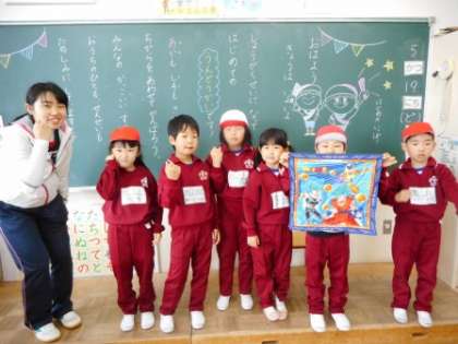 運動会の朝の曇り空を吹き飛ばすような1・2年生のやる気に満ちた表情です。「勝っても負けても、最後までがんばる!」と気合いを入れていました。
