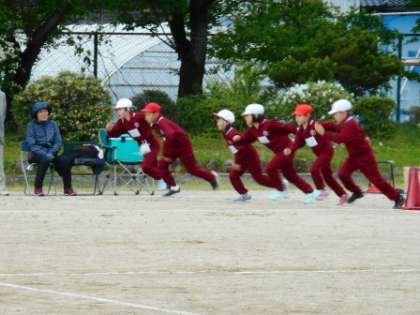 徒競走トップバッターは、3年生。これまで練習してきた成果をこの一本の走りにかけて頑張りました。順位はついたものの、どの児童も必死で最後まで走る姿に大きなあたたかい拍手があがりました。