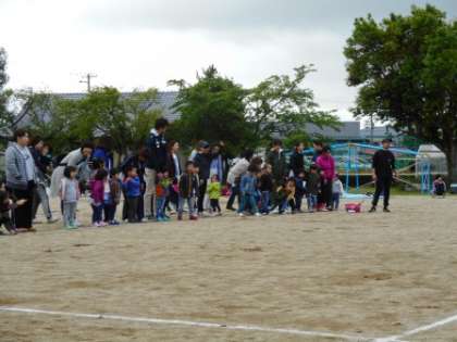 安子島地区のちびっこが大集合。お兄さんお姉さんに負けじと元気よくかけだしました。