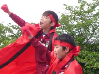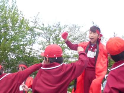 紅組団長の柳田君の熱気を帯びたかけ声に紅組が一丸となりました。