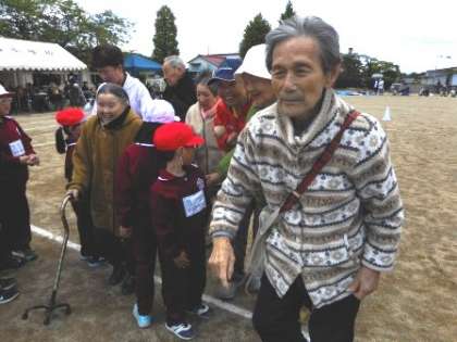 地域に暮らしているお年寄りの皆さん、児童のおじいちゃん、おばあちゃんたちもお宝拾いに参加してくれました。最後まで一生懸命の走りに、おもわず拍手をする2年生もいました。お年寄りの頑張りに児童の皆さんも負けられませんね。