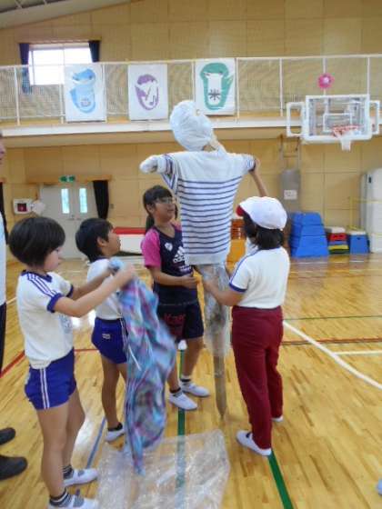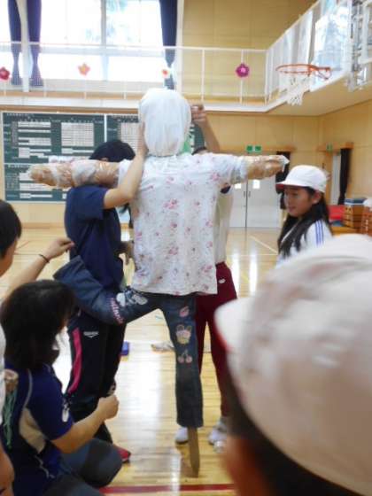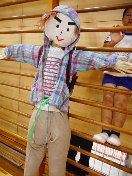 作りかけの案山子を立ててみて、全体のバランスを見ました。足の先にもこだわってみました。