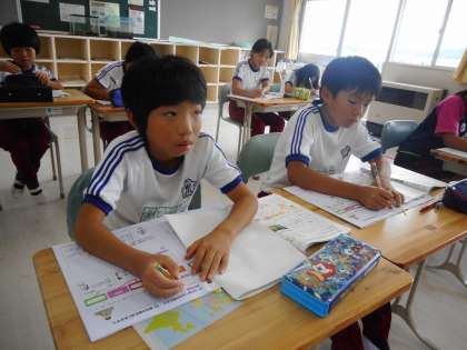 命を保つ、活動するために大切な食事。日本の伝統的な食事の基本となるごはんとみそ汁について学習しました。陸上の練習が始まった高学年のみなさん、特に朝のみそ汁は大切です。