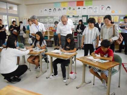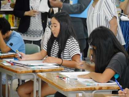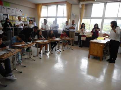熱海地区の小学校・中学校の先生方においでいただき、4年生の算数の授業を見ていただきました。「2けたの数でわる筆算」にチャレンジです。