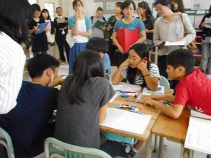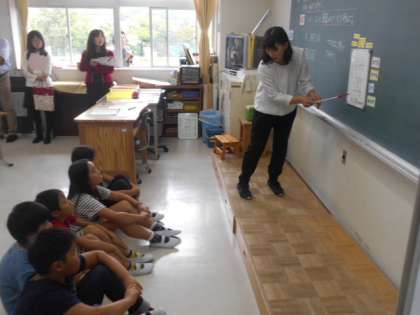 筆算のやりかたを全体で確認し、活用問題をグループで挑戦しました。途中まで考えましたが、時間となりました。家でもやってみたいと意欲をかき立てられた4年生でした。