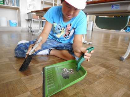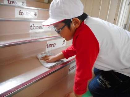 自分の担当箇所が終わると、特別教室、廊下や階段、玄関付近を清掃する児童のみなさん。時間を上手に使って、すみずみまで清掃しました。
