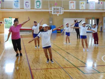 前半は、手足の使い方がぎこちなく基本動作やステップがうまくできませんでしたが、先生がひとつひとつ丁寧にスモールステップで指導してくださいました。プラスの言葉をたくさんもらい、励ましていただきながら後半には、リズムに乗って軽快に身体を動かせるようになりました。とても楽しくてもっと練習してうまくなりたいと自主的に練習する3・4年生でした。関根先生、ありがとうございました。