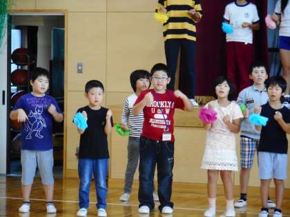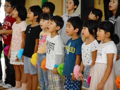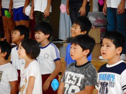 あいまいな言葉を確認し、リズムに乗って身体全体で「世界に一つだけ」の歌になるよう練習しました。祖父母参観、安子島地区敬老会での披露をお楽しみに。