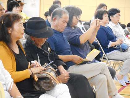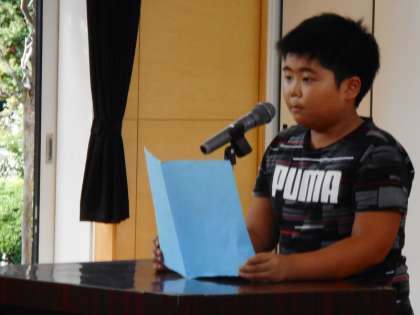 大好きなおじいちゃんにバイクに乗せてもらい、いろんな経験をさせてもらっている4年の馬場君。感謝の気持ちをこめて作文発表をしました。